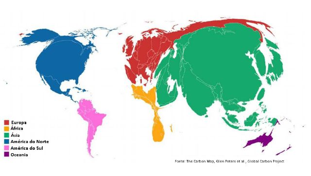 No mapa tradicional, a representação da Terra, continentes, países, estados, municípios, etc. é realizada levando-se em consideração a área territorial de cada país, normalmente medida em km². No caso de mapas temáticos, uma cor ou um símbolo é associado ao polígono de cada país, o que determina a grandeza do tema representado - população, Produto Interno Bruto (PIB) ou outro tema qualquer.