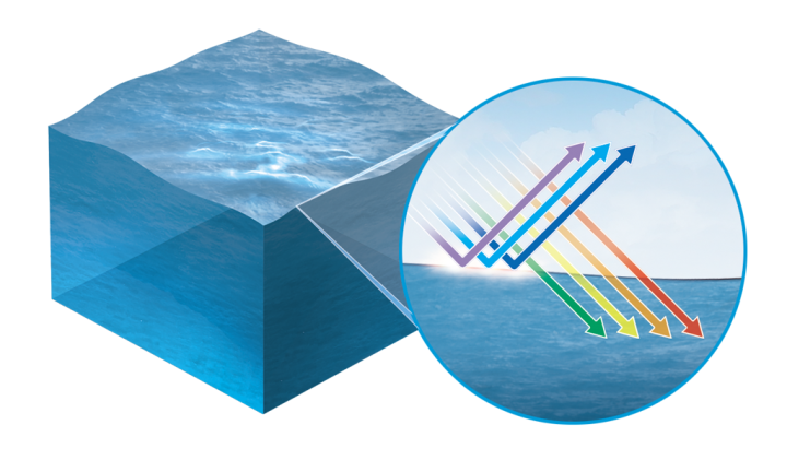 O mar é azul porque funciona como um filtro da luz solar. A energia luminosa de algumas cores é absorvida pelo oceano mais perto da superfície do que a energia de outras cores. A luz azul penetra mais fundo e se espalha o suficiente pela coluna d'água para ser refletida de volta para nossos olhos, fazendo com que enxerguemos o mar azul. Enquanto isso, outras cores do espectro, como vermelho e laranja, são absorvidas e sua energia é transformada em calor.
